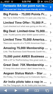 TPG has taken it a step beyond, truly to the realm of self-parody.  He’s done a second post on the 75k Amex offer “if you like that, I have 10 more cards for you to consider applying for at the same time!”
