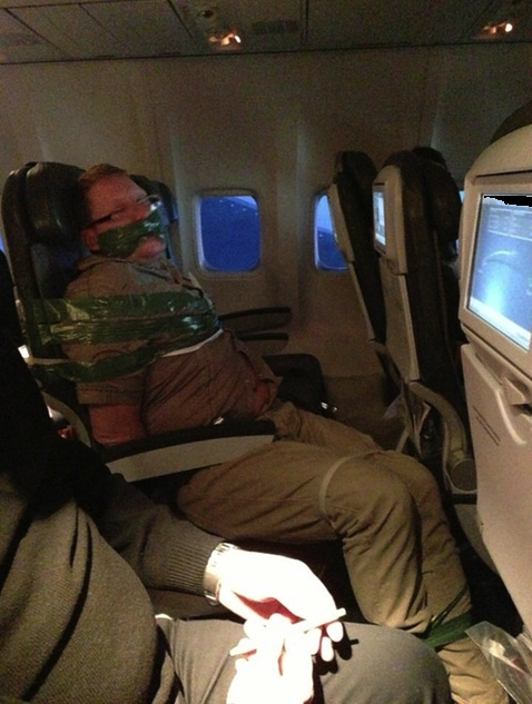 This is the photo of the passenger on the Icelandic Air flight heading to JFK who went ballistic and had to be restrained by…duct tape! Story is everywhere on the web. If I had to sit next to this guy I would be traumatized! Can you imagine the lawsuits here in the US? Actually I feel awful for posting the poor guy’s pic here…Dude, get some help please. A whole bottle of whiskey just before boarding is not a good idea!